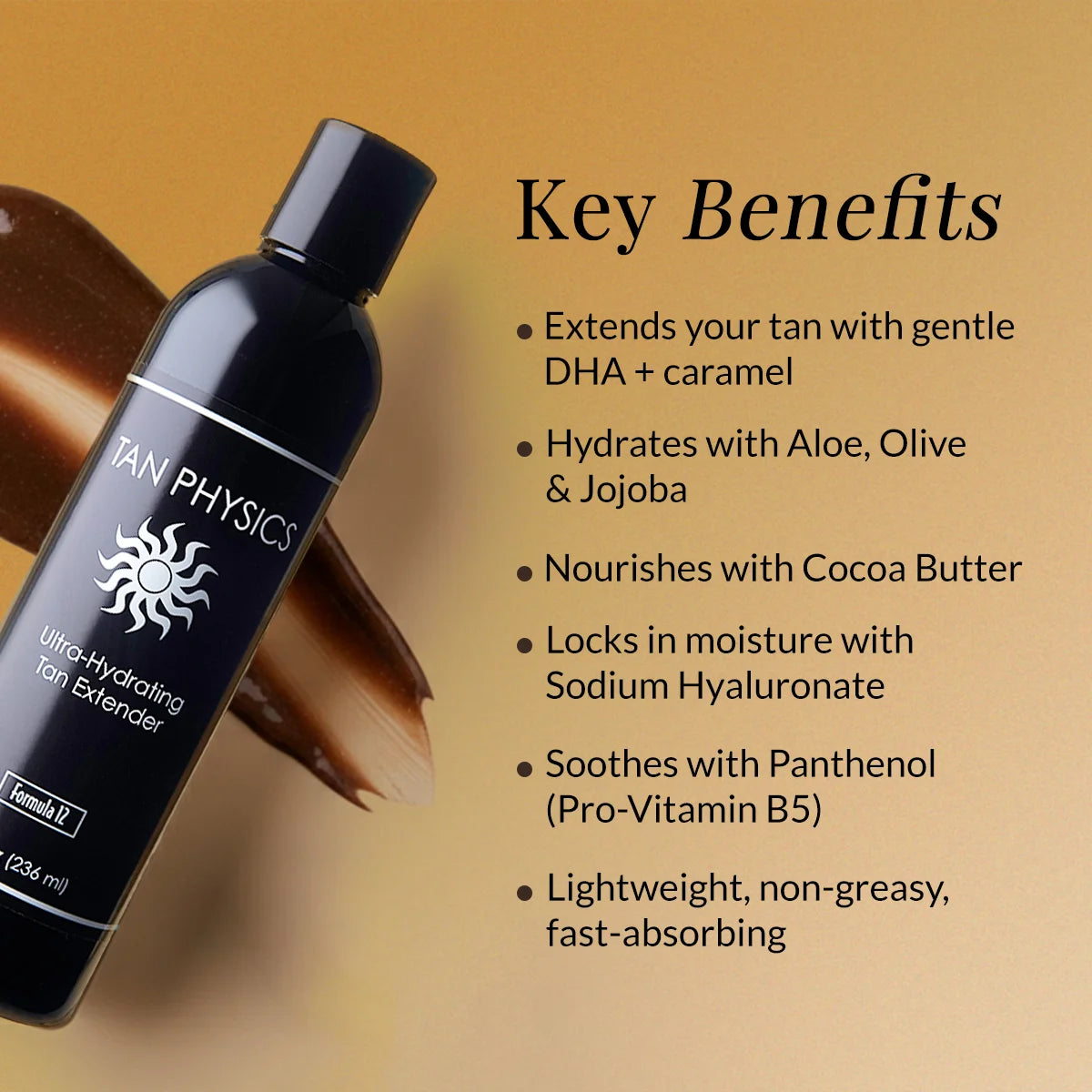 At Tan Physics, we believe beauty should be effortless, authentic, and confidence-boosting. Our Extender is designed specifically for mature skin, to keep your tan smooth, hydrated, and natural-looking for longer.